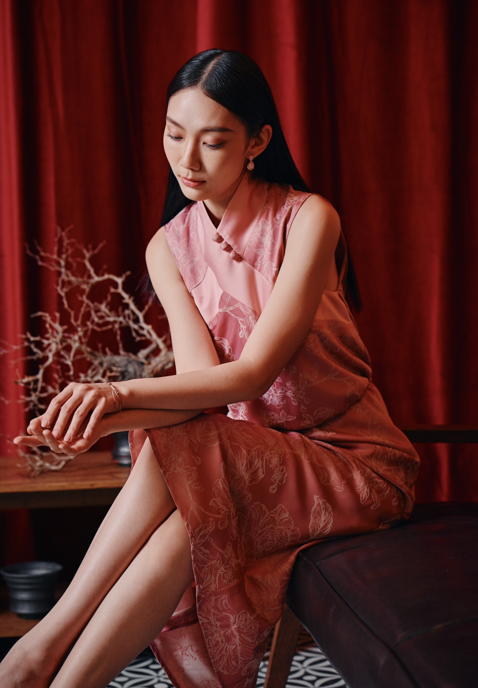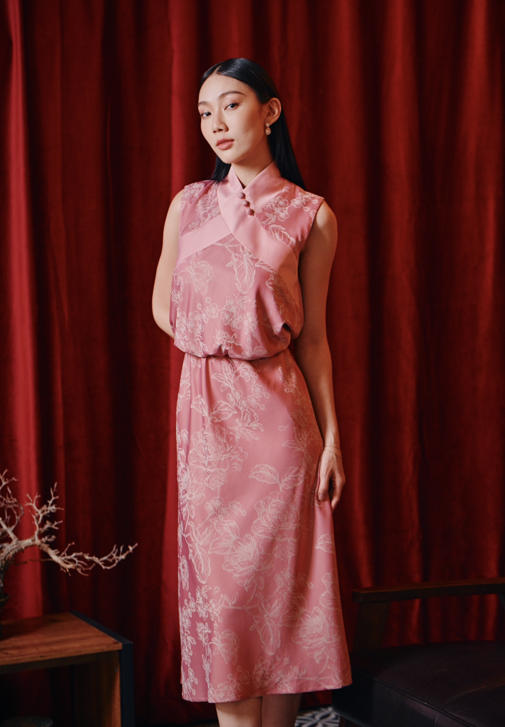 Hwā dusty pink bias cut dress