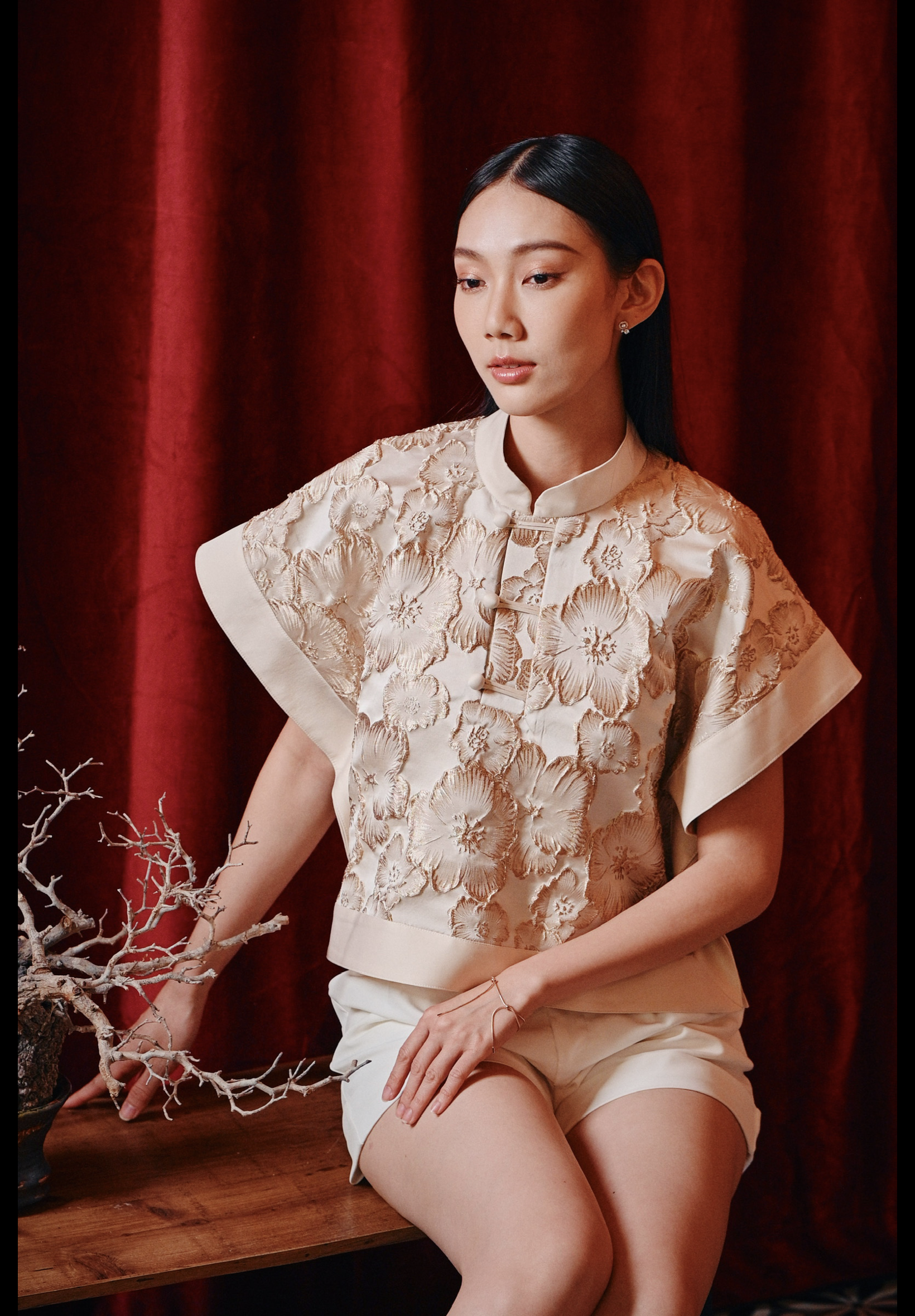 Liàng Handkerchief top in gold brocade