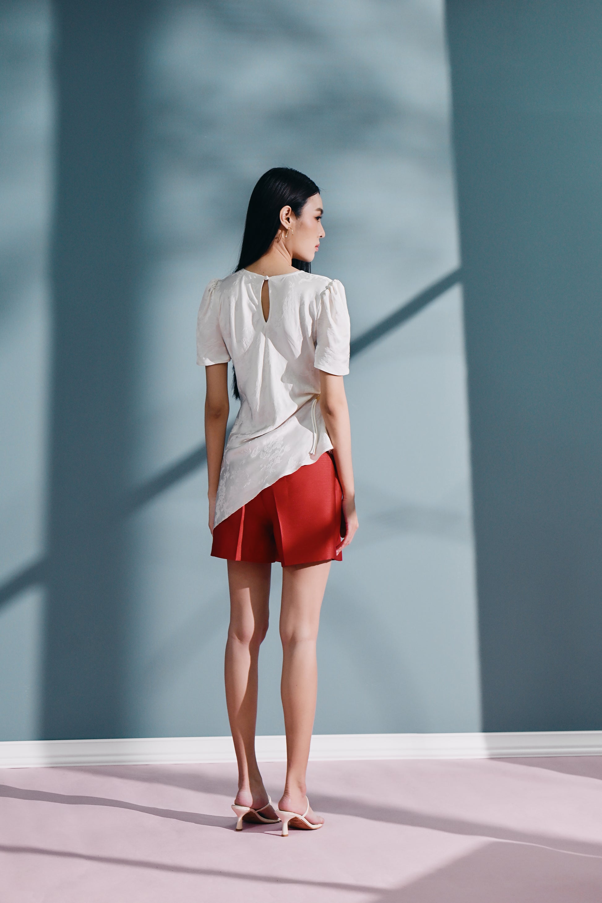 Mò li draped top in white jacquard