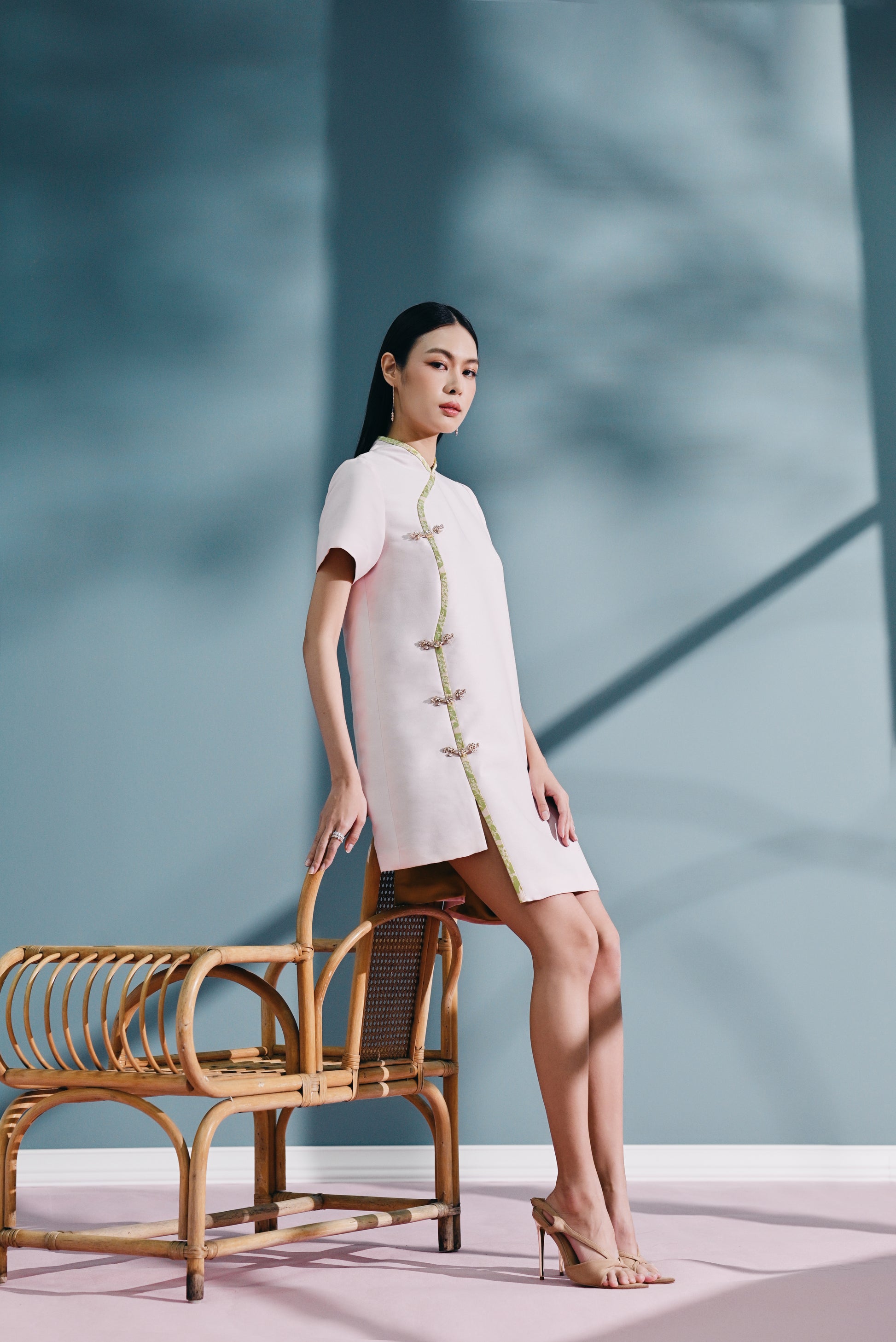 Pǔ ěr Relaxed Qipao dress in Twill Teffata